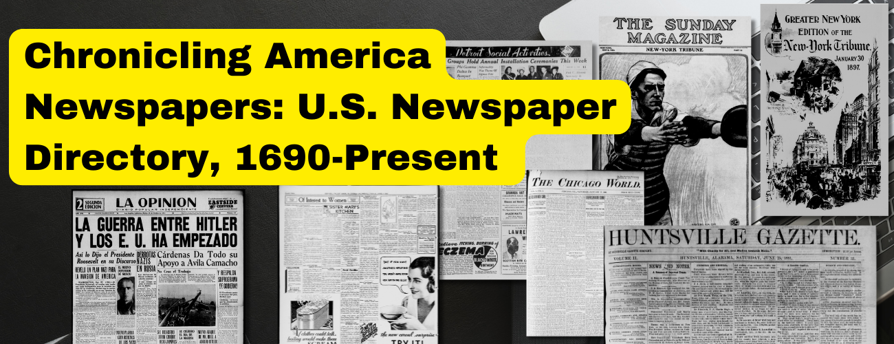 Search American historic newspaper pages from 1756-1963 or use the U.S. Newspaper Directory to find information about American newspapers published between 1690-present. Chronicling America is sponsored jointly by the National Endowment for the Humanities and the Library of Congress. Chronicling America Newspapers: U.S. Newspaper Directory, 1690-Present This link opens in a new window This directory of newspapers published in the United States since 1690 can help identify what titles exist for a specific place and time, and how to access them. Use the options below to select a particular place and time, using keywords to locate specific titles. Titles currently listed: 157,529. Search America's historic newspaper pages from 1756-1963 or use the U.S. Newspaper Directory to find information about American newspapers published between 1690-present. Chronicling America is sponsored jointly by the National Endowment for the Humanities and the Library of Congress. ... View Post
